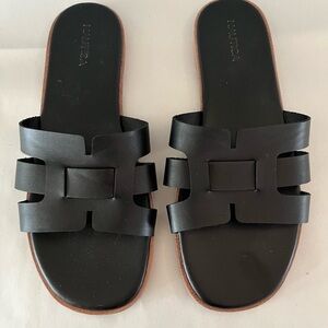 Nautica Woven Black Leather Slip on Slide Mule Sandal size Euro 40 US 9-9.5