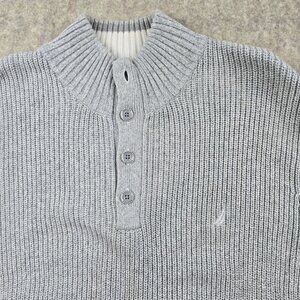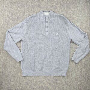 Nautica XL Gray Ribbed Cotton Mens Sweater With Button Collar