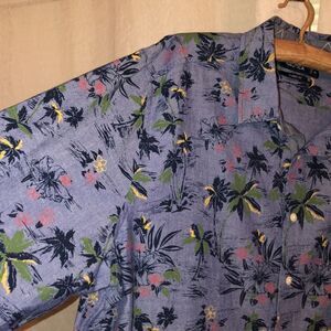 Nautica XXL Chambray Tropical Print Blue Button Down Casual Long Sleeve Shirt