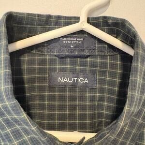 Nautica Y2K Men's Button Down Shirt 100% Cotton Green Plaid Size Large Grunge