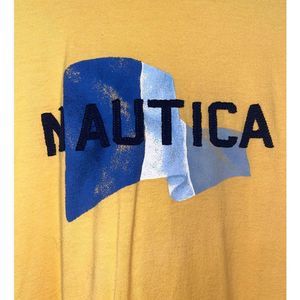 Nautica Y2K Yellow Mens T Shirt Size Large‎ Blue Flag