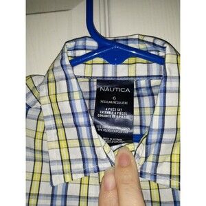Nautica Yellow White & Blue Plaid Boys Size 6 Button Down Shirt