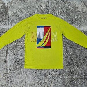 Nautica Young Kid T Shirt Long Sleeve Cotton Crew Neck Tee Green Size L 14/16