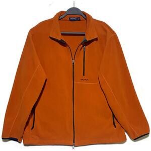 Nautica Zip Up Sweater Men's Size Large Orange Long Sleeve Full Zip
