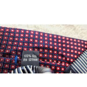 Nautica blue red square pattern silk tie