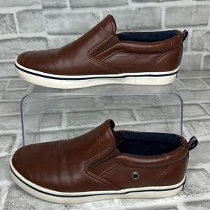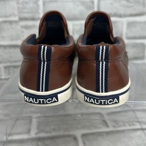Nautica boys dark brown leather slip on shoes. Size 4. Gently used condition.
