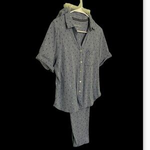 Nautica button up Pajamas size M one pocket bottom has stetch waist