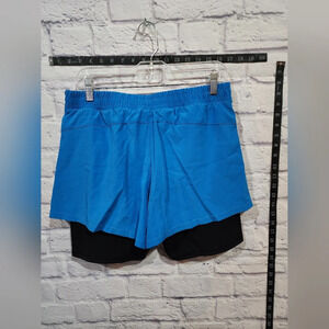 Nautica competition running shorts blue with black compression shorts Large NEW