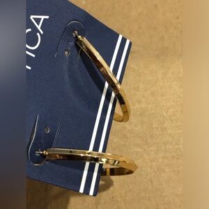 Nautica gold tone circle angular hoop earrings new