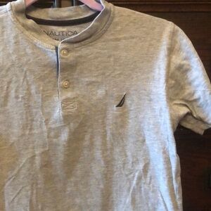 Short sleeve tee with three buttons going down the middle neckline. (Size 10-12)