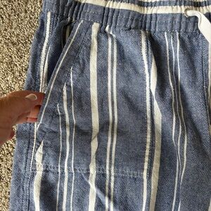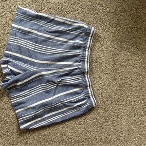 Cute classic striped shorts. Linen blend. Elastic waist with tie. Patch pockets. See pics for measurements