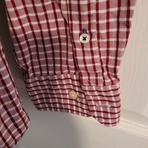 Super nice shirt. Very well made. Made with 100% cotton material. Tag says size XL.