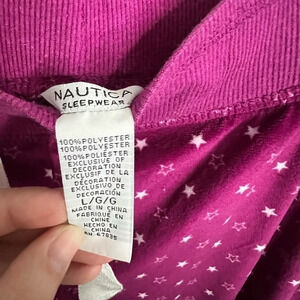 Nautica purple pajama pants. Star designs throughout. Flare leg. Size large. 100% polyester