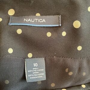 Nautica pleated semi sheer overlay skirt black tan polka dot size 10