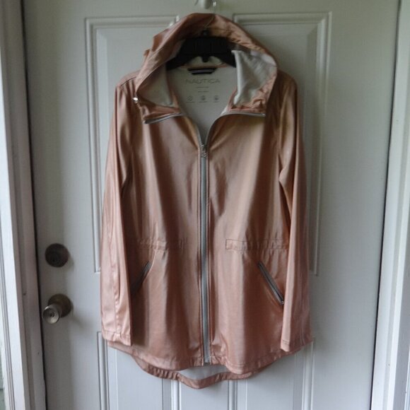 Nautica size L, light weight hooded jacket, zip up front, Champagne color, VGC