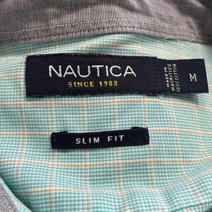 Nautica slim fit men’s long sleeved button down Checked Mint green Size Medium