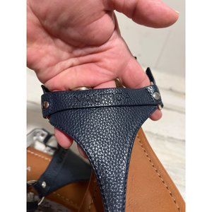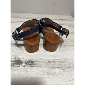 Nautica woman’s blue toe sandals with ankle strap size 7.5 has 1.5” heel. Ankle stem rap has two silver tone circles and silver tone buckle. Good pre-owned condition.