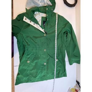 Nautica women’s green jacket adjustable waist zipper and buttons