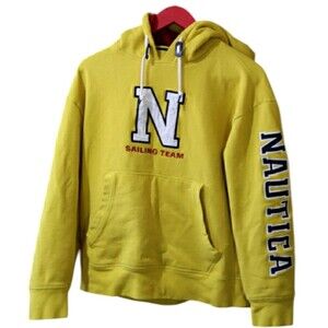 Nautica is celebrated for bold, preppy designs with a modern, streetwear edge. This bright yellow hoodie features spellout branding and a playful vintage Y2K aesthetic. A versatile option for layering over tees, pairing with casual pants, or adding a pop of color to your streetwear rotation, it delivers edgy retro style. Embrace its vintage charm and bold look—this statement hoodie brings vibrant, nostalgic energy to your casual wardrobe.