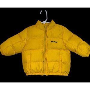 Like New! Baby puffer jacket by Nautica. Size L (12-18 months). Bright yellow. Full zip, velcro pockets. 60% duck down, 40% feathers. Machine washable.