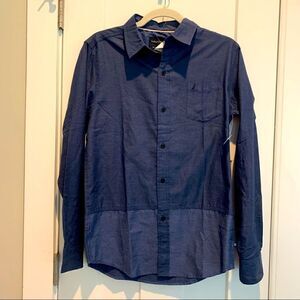 Nautica Button-Down Collared Navy Blue ColorBlock Untuck Shirt Boy’s XL NWT