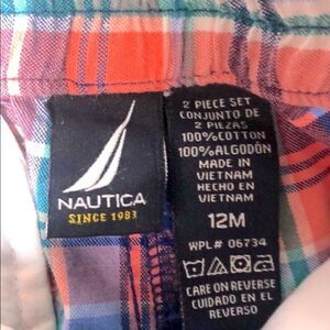 Blue and orange shorts are by Nautica. The Cherokee shorts are blue, white and lime green. Both in great condition!