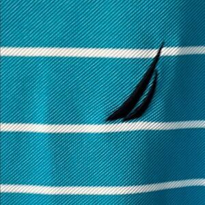 Experience the perfect blend of style and comfort with the Nautica Hawaiian Ocean Gradient Polo Shirt. This polo features a dynamic gradient design transitioning from teal blue to white, enhanced by horizontal stripes for a modern look. Crafted from performance material, it's ideal for sports or casual outings, offering both functionality and a clean, sporty aesthetic.