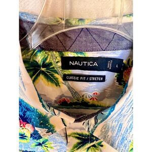 Nautica Mens Hawaiian Summer Tropical Short Sleeve Button Down Stretch Shirt Sz Large