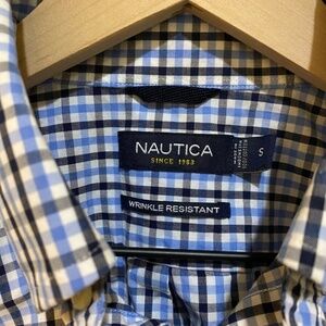 Nautica-Men's Small-Short sleeved-Collared-Button Down-Blue-Wrinkle Resistant
