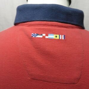Nautica Red Navy Blue Aqua Color Block Polo Shirt L