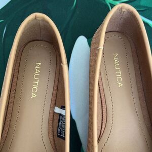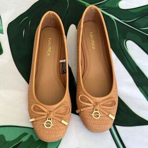 Nautica brand beige flats with bow and gold emblem details. Excellent use condition no damage.
