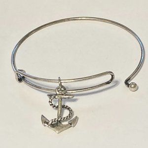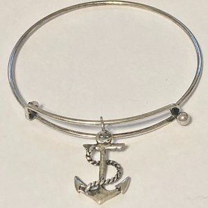 Nautical Anchor Charm Bracelet Beach Island Bangle Stackable Silver Plated 8"