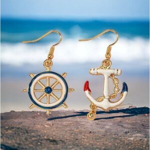 Cute Dangel Gold plated asymmetric, nautical, enamel earrings . So cute. Great with jeans or a day at the beach. Perfect gift!