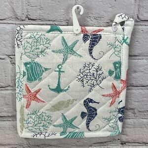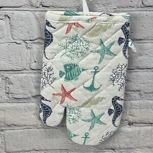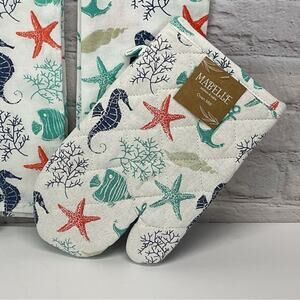 Nautical Beach Theme 4 Piece Kitchen Set 2 Dish Towels 1 Pot Holder 1 Oven Mitt