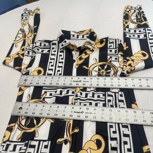 Nautical Black White Gold Ship Wheel Chain Printed Vintage Dress Size Medium