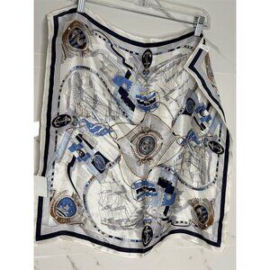 Nautical Blue Silk Scarf Geometric Maritime Ships 20” square Twilly Designer