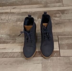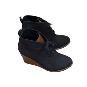 Nautical Blue Waterline Wedge Bootie Lace Up Ankle Boots Size.