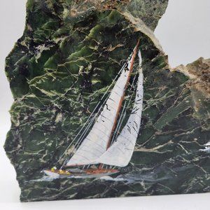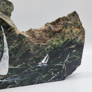 Nautical Boats Oil Painting On Jade Stone Home Accents Decor Rare Handpainted