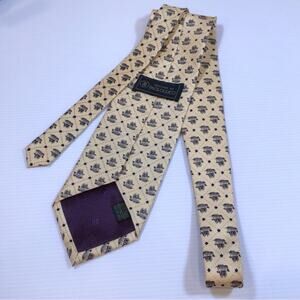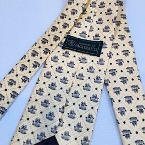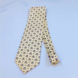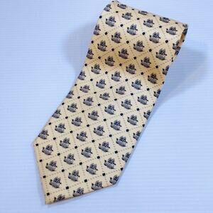 Woven silk butter yellow neck tie nautical clipper ship motif