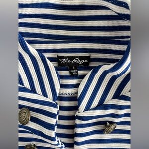 Elevate your style with this chic navy striped jacket. Perfect for any occasion.