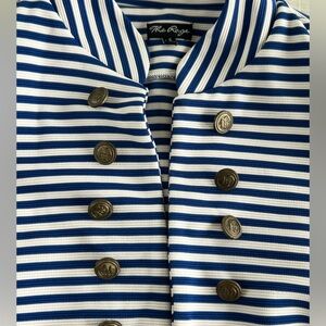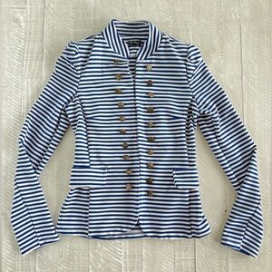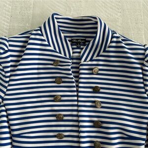 Nautical Fisherman Navy & White Striped Blazer Jacket size Small