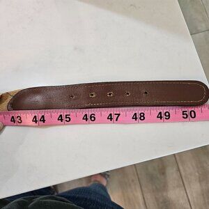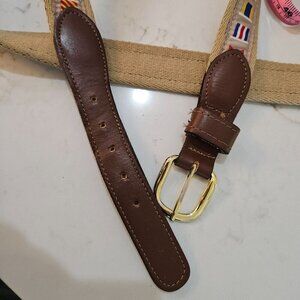 Nautical Flag Pattern Fabric Belt Leather Accents Gold Buckle 45" - 48"