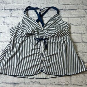 Nautical Navy/White Striped Tankini 2 Piece Swim Suit. Size 2X. #fishermancore