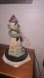Charming lighthouse "Nautical Nest" birdhouse decor. Features a rustic cream and green design. Perfect for adding a nautical touch to any decor. Cute little additions, ladder, up top and in back, bucket, row boat, ax, net