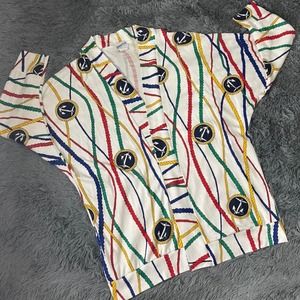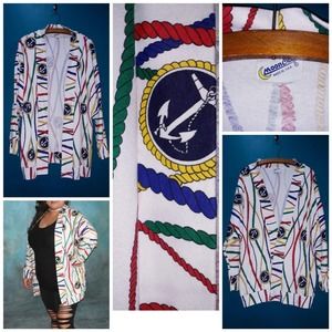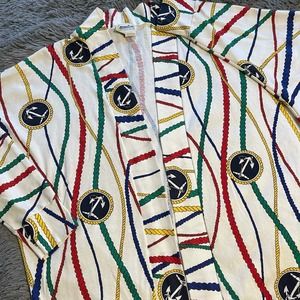 Brand: Moon Craft- From the 1980's- In Beautiful/ Lightly Worn Condition- Soft Cotton Blend- Beautiful Primary Colors Nautical Print- Ropes & Anchors- Open Front Design- A Classic Piece!