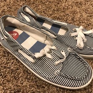 Only worn once! Blue and white striped Roxy flats. Excellent condition.