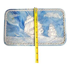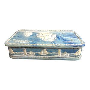 Nautical Sailing Clipper Ships Incolay Stone Jewelry Keepsake Box Large Usa 12"