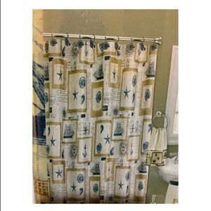 Nautical Seashell Beach Fabric Shower Curtain Beige Blue Popular Bath 70x72” NEW