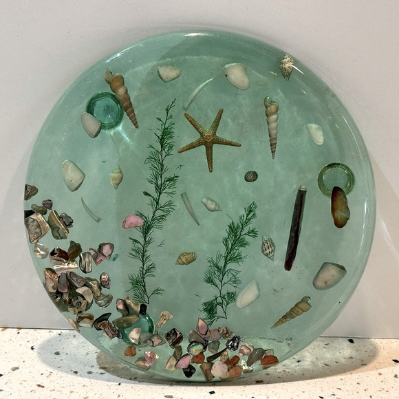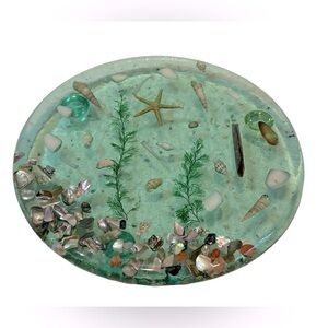 Nautical Seashell Hand Crafted Glass Trivet Hot Plate Holder