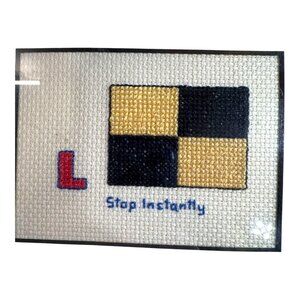 Enhance your maritime decor with this nautical signal flags embroidery wall art. Each flag is meticulously crafted, conveying essential maritime messages. The gold frame adds a touch of elegance, making it a great addition to any space with a coastal or nautical theme. Display your passion for sailing and the sea.